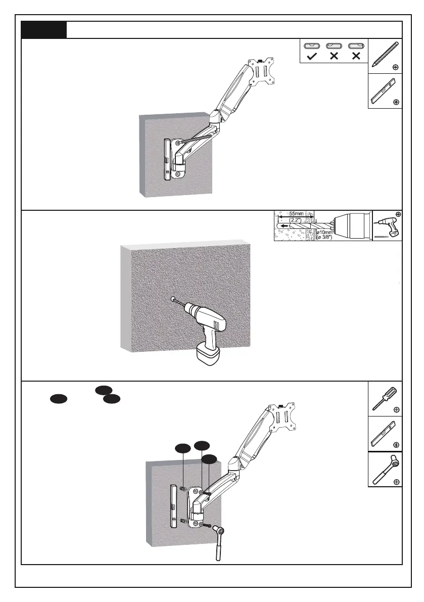 3. Insert the Anchor into the mounting holes. Attach the mount to concrete wall and tighten using