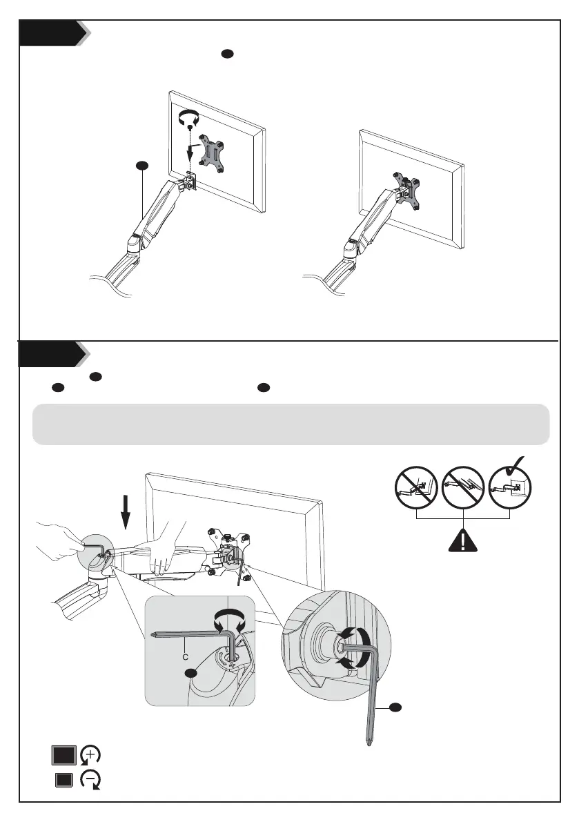 · Insert the 5mm Allen Key into the adjusting hole and turn clockwise (-) to reduce gas spring tension, suitable for lighter screens.