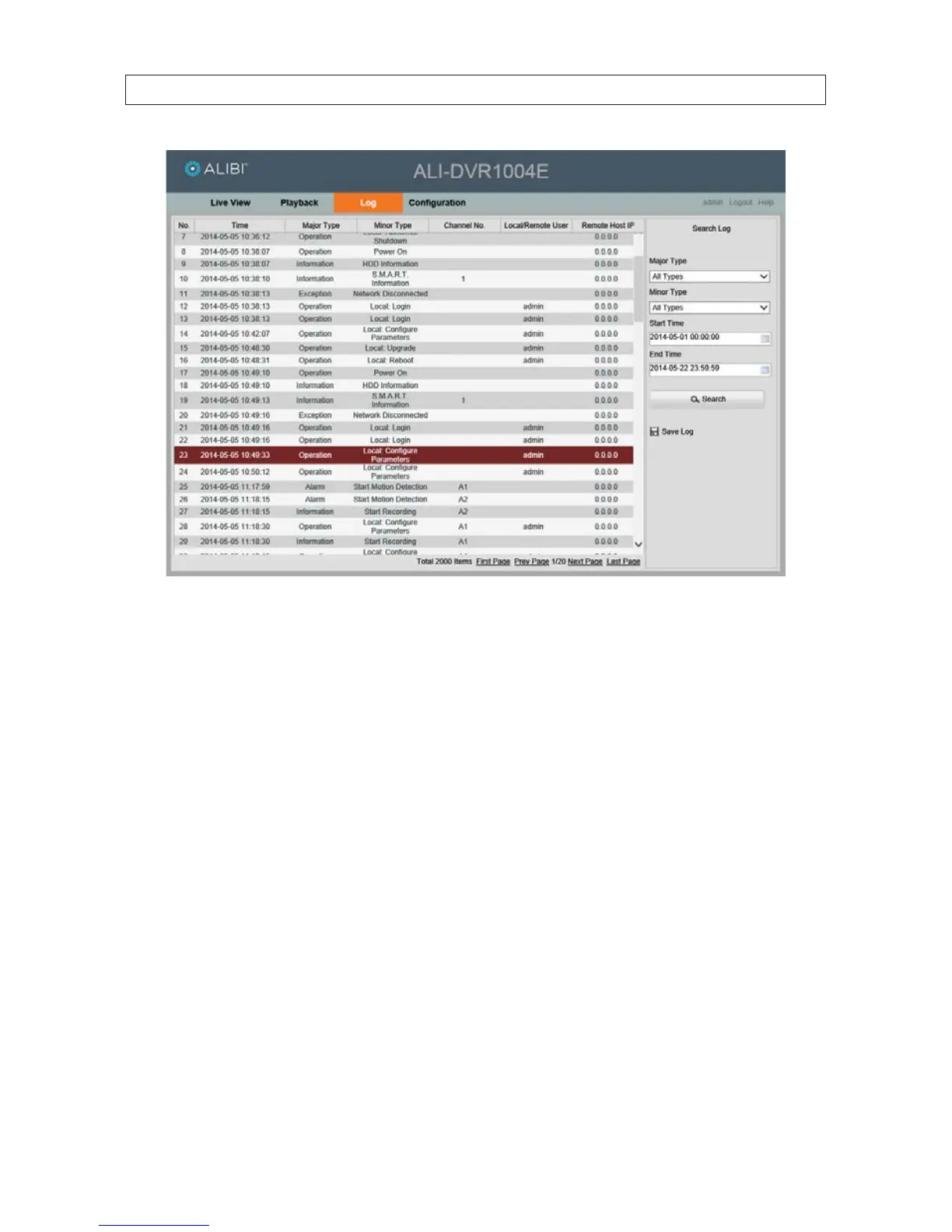changes. The User Name you use to login to the DVR must have administrative privileges to change the DVR conguration.