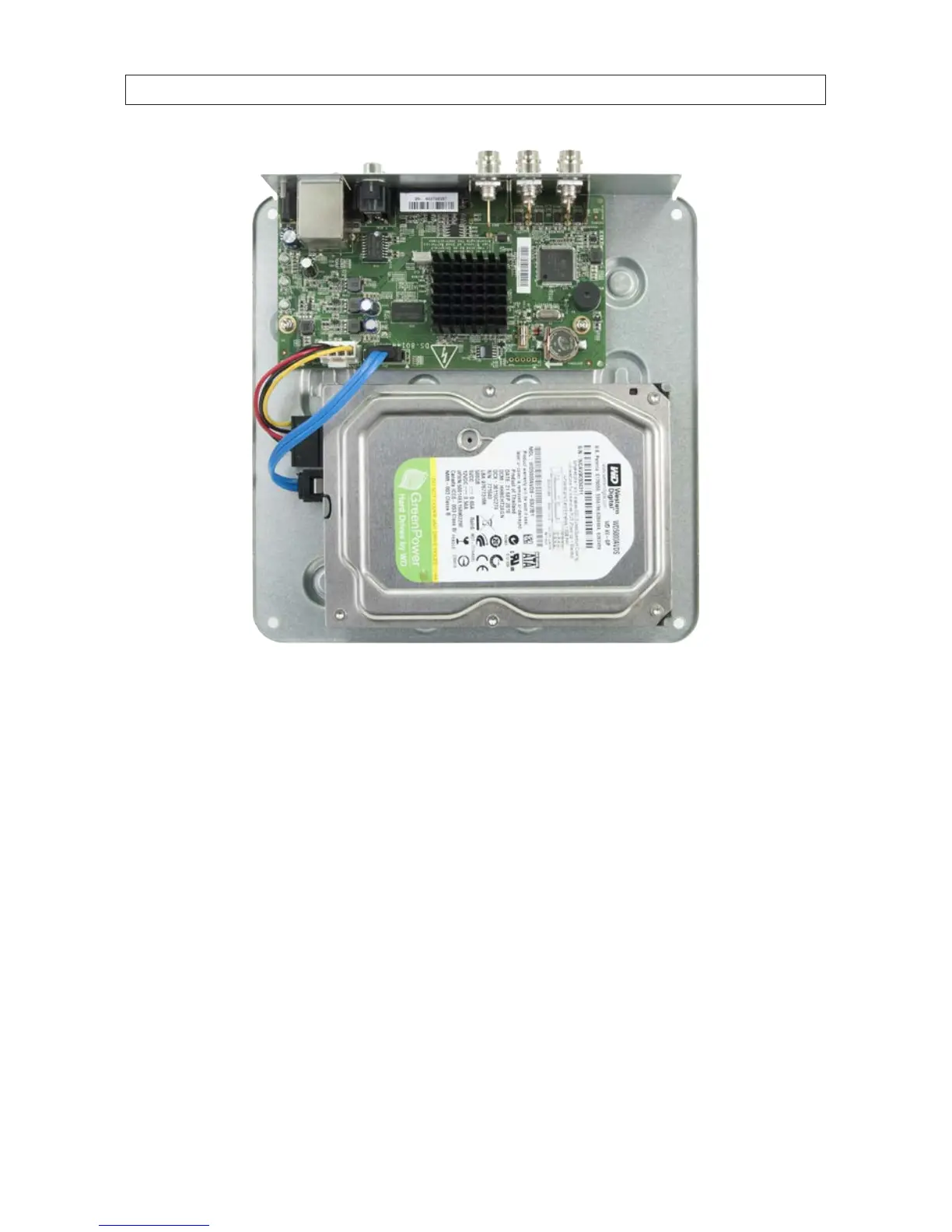 5. While holding the HDD in place in the DVR chassis, turn the assembly over, then tighten the four HDD mounting screws until
