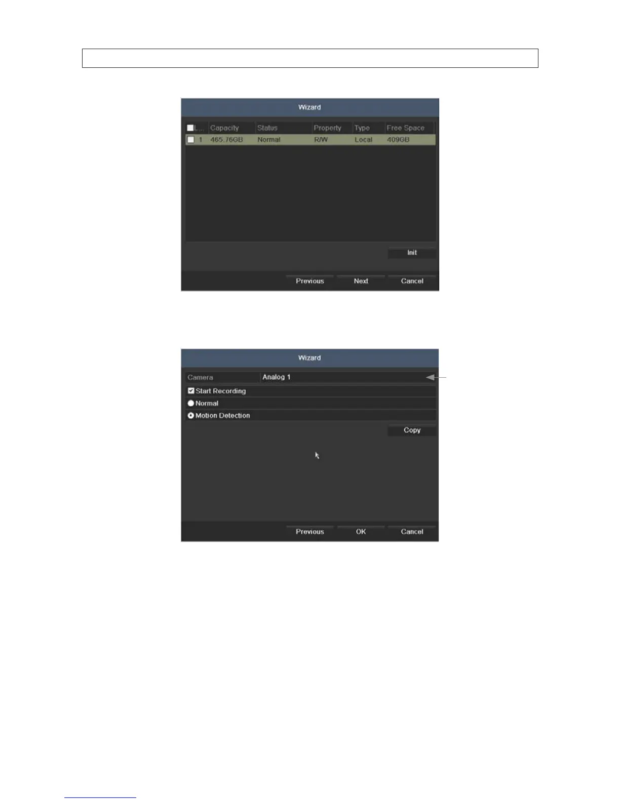 * To copy these recording settings to other cameras connected to the DVR, click Copy, then select the other cameras