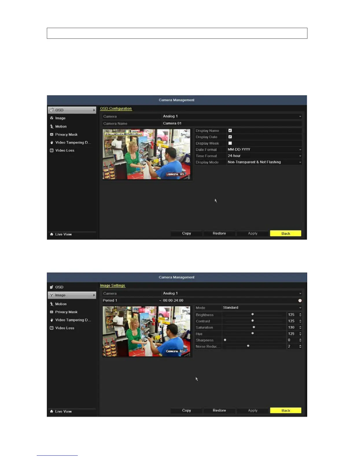individually. Click Apply to save your settings. Use the Copy tool to easily apply use the settings you chose for other cameras.