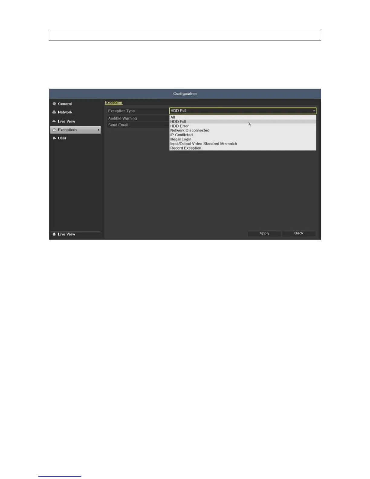 2. On the Exception Type line, open the drop down list and select the exception condition you want to congure. If you select