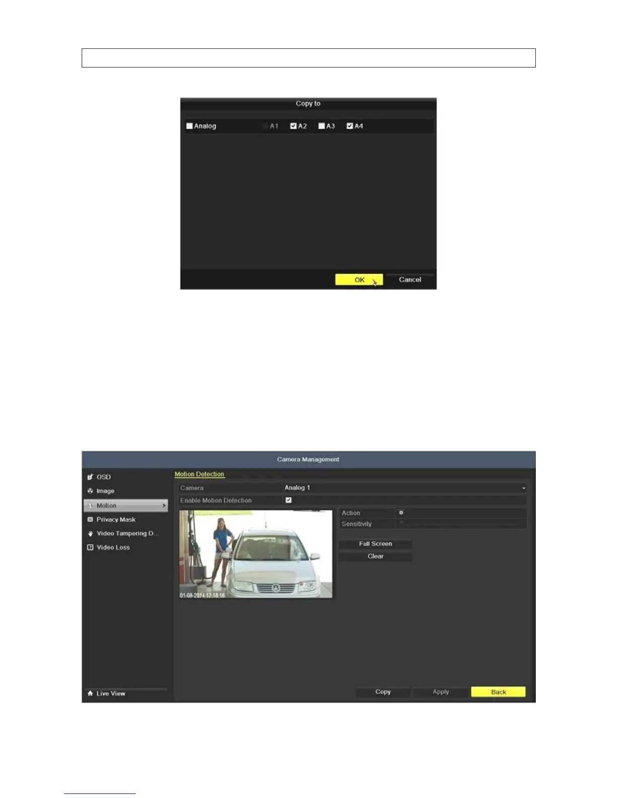 1. Open the Motion Detection menu. Go to Menu | Camera | Motion