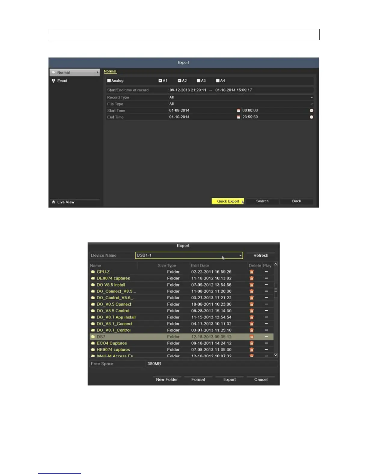 5. Click the Quick Export button. A pop-up window will open showing the le structure of your external storage device. If your