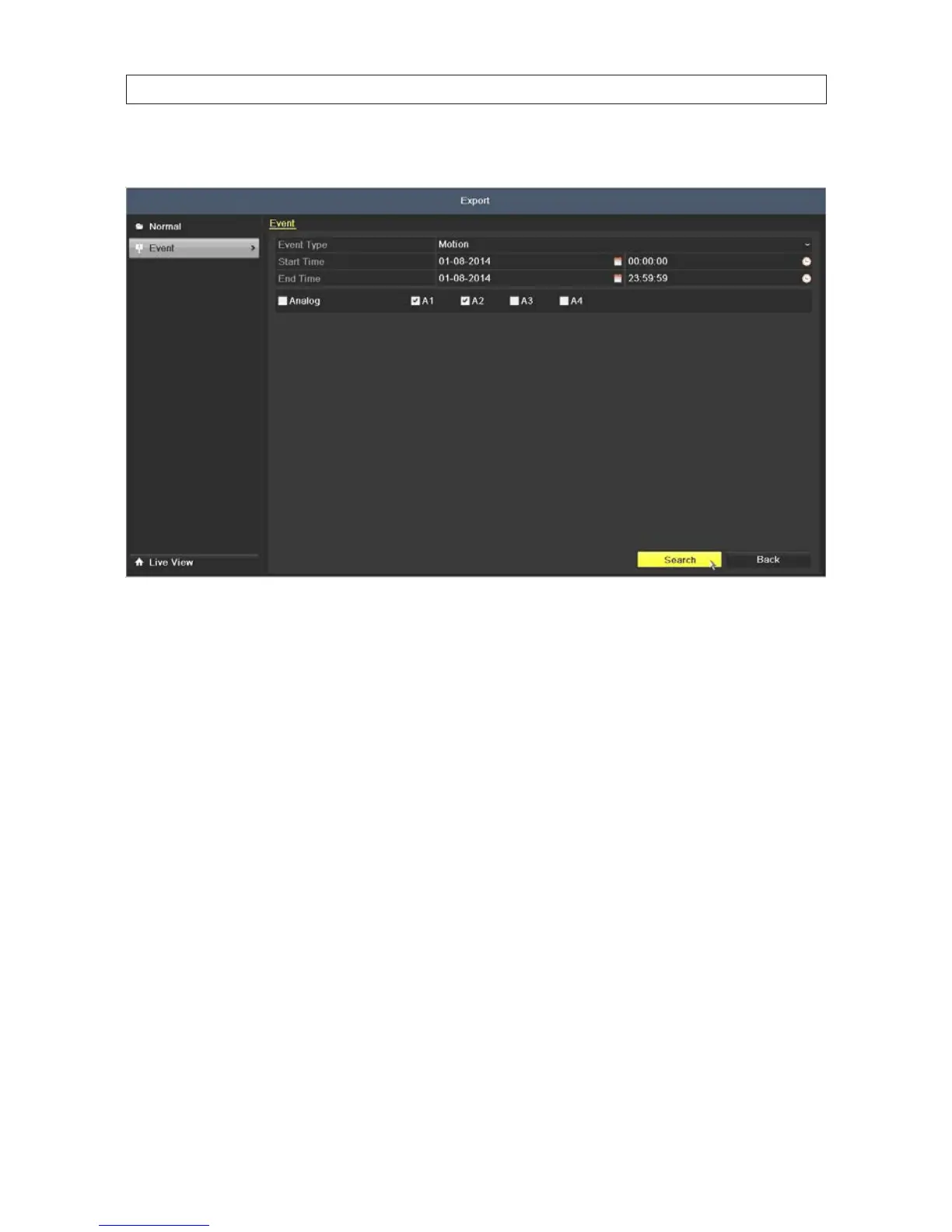 4. Check the boxes for the analog cameras you want to search. In the example above, A1 and A2, representing camera channel