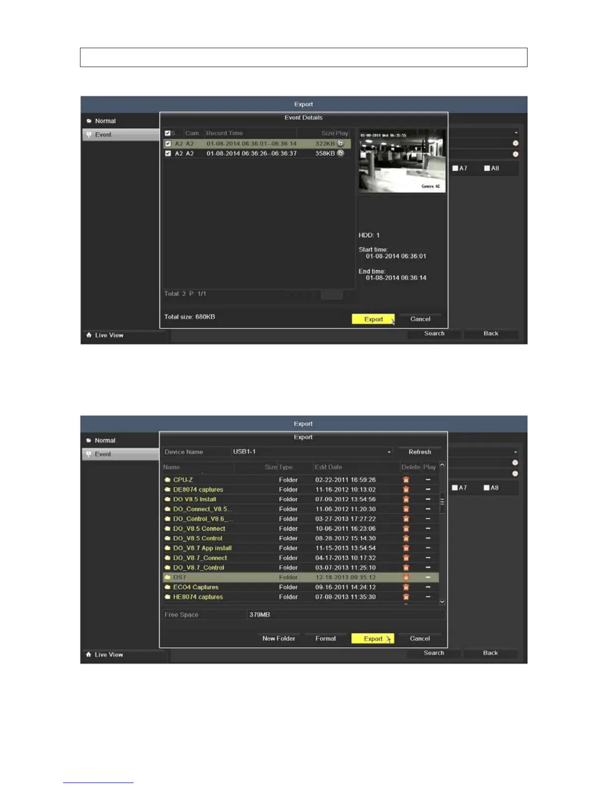8. In the Events Detail window, click Export to open the Export window. A pop-up window will open showing the le