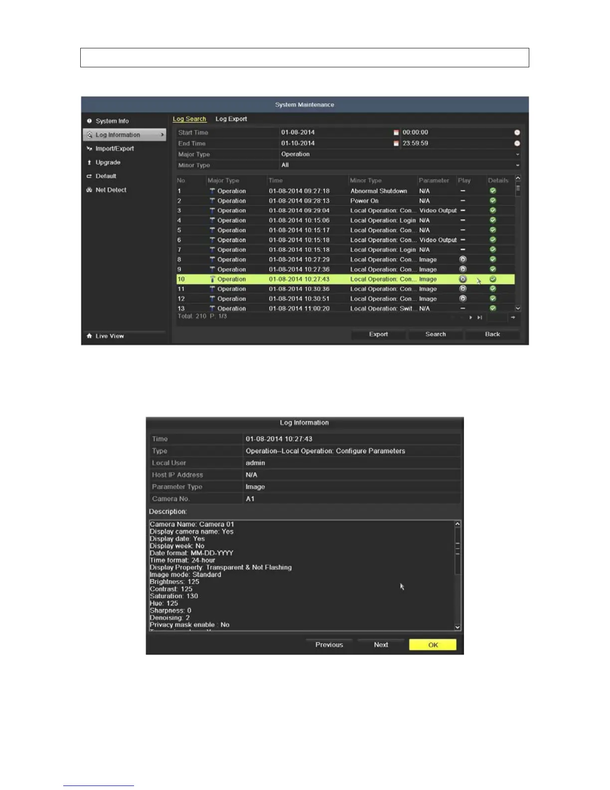 play the le, or click the icon in the Details column to see more information about the entry. The Log Information Details screen
