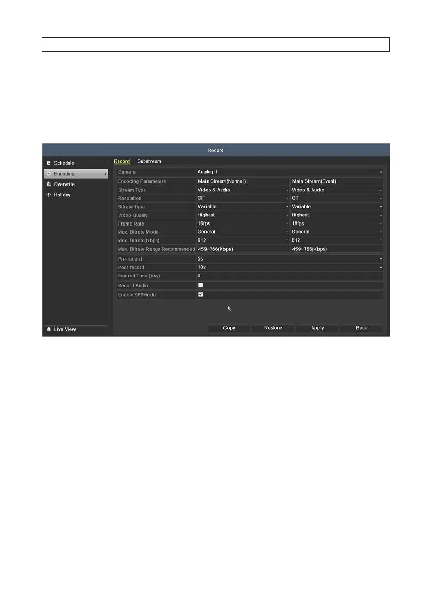 1. Enter the Record settings interface to congure the encoding parameters. Go to Menu | Encoding | Record