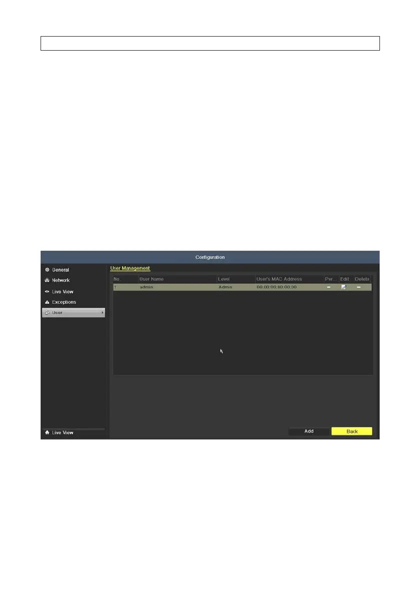 1. Enter the User Management interface. Go to Menu | Conguration | User