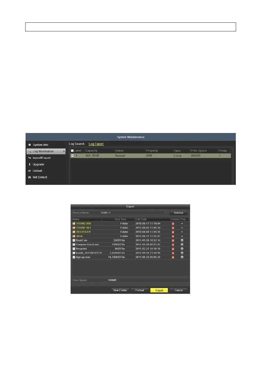Log information can be exported to a backup device such as a USB storage device. The exported log le is in .txt format and readable
