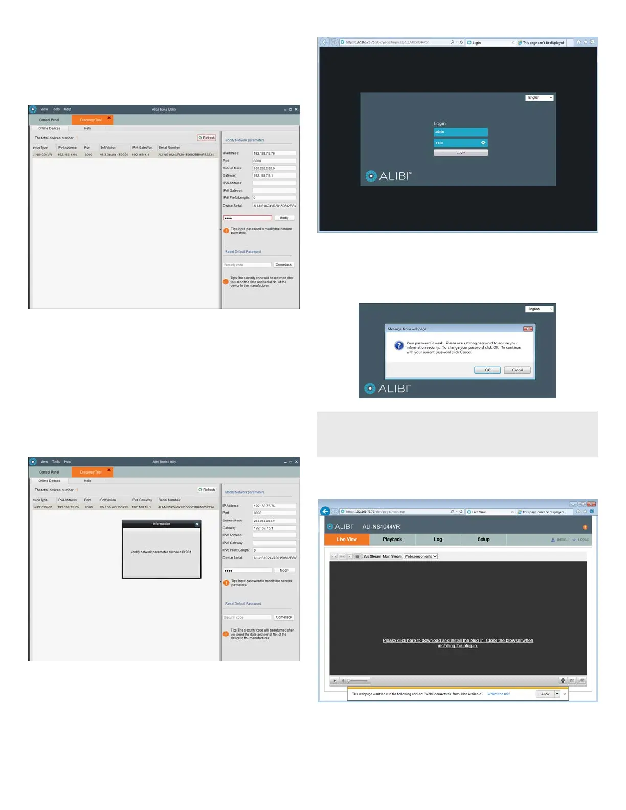 5. If this login is the rst login to an Alibi camera from your computer and browser, continue with the