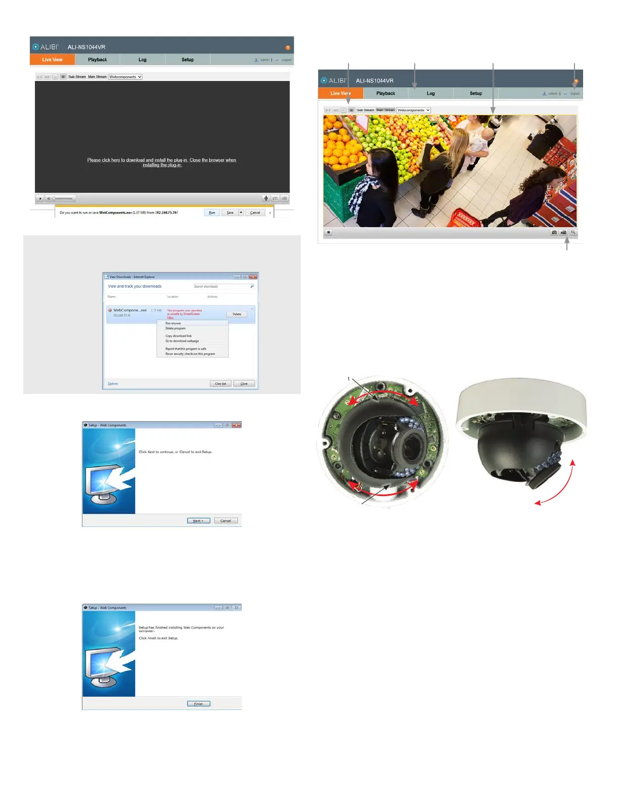1. Observe the Live View screen to adjust the direction of the camera. To adjust the camera pan, grasp