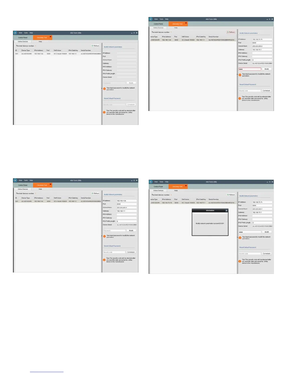 In the example screen shown above, an ALI-NS1024VR camera was discovered. Notice that the IP