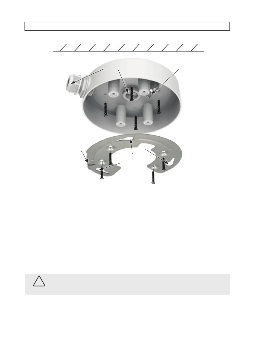 9. While storing extra cable in the junction box above the adapter plate, position the camera on the adapter plate such that