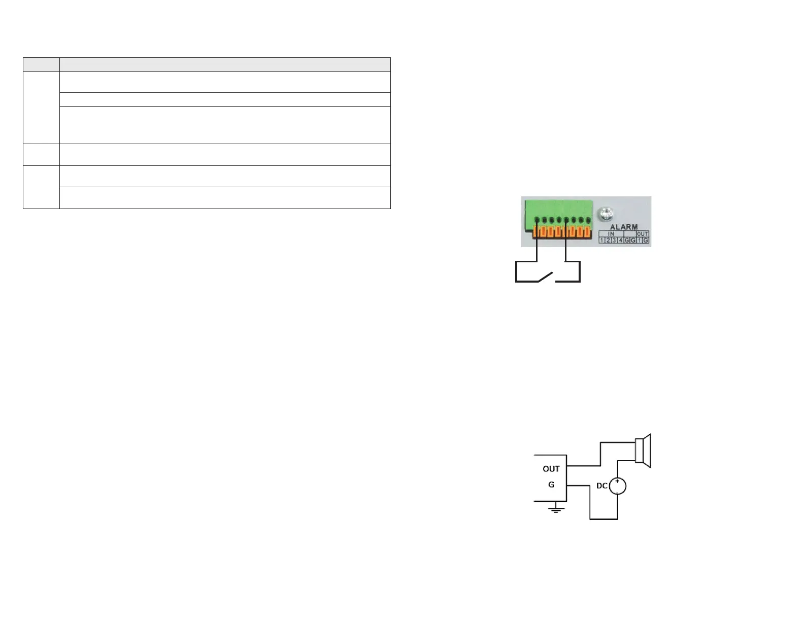 The NVR provides 1 alarm output termination that supports a DC load alarm out circuit. These terminations are marked on the back of the