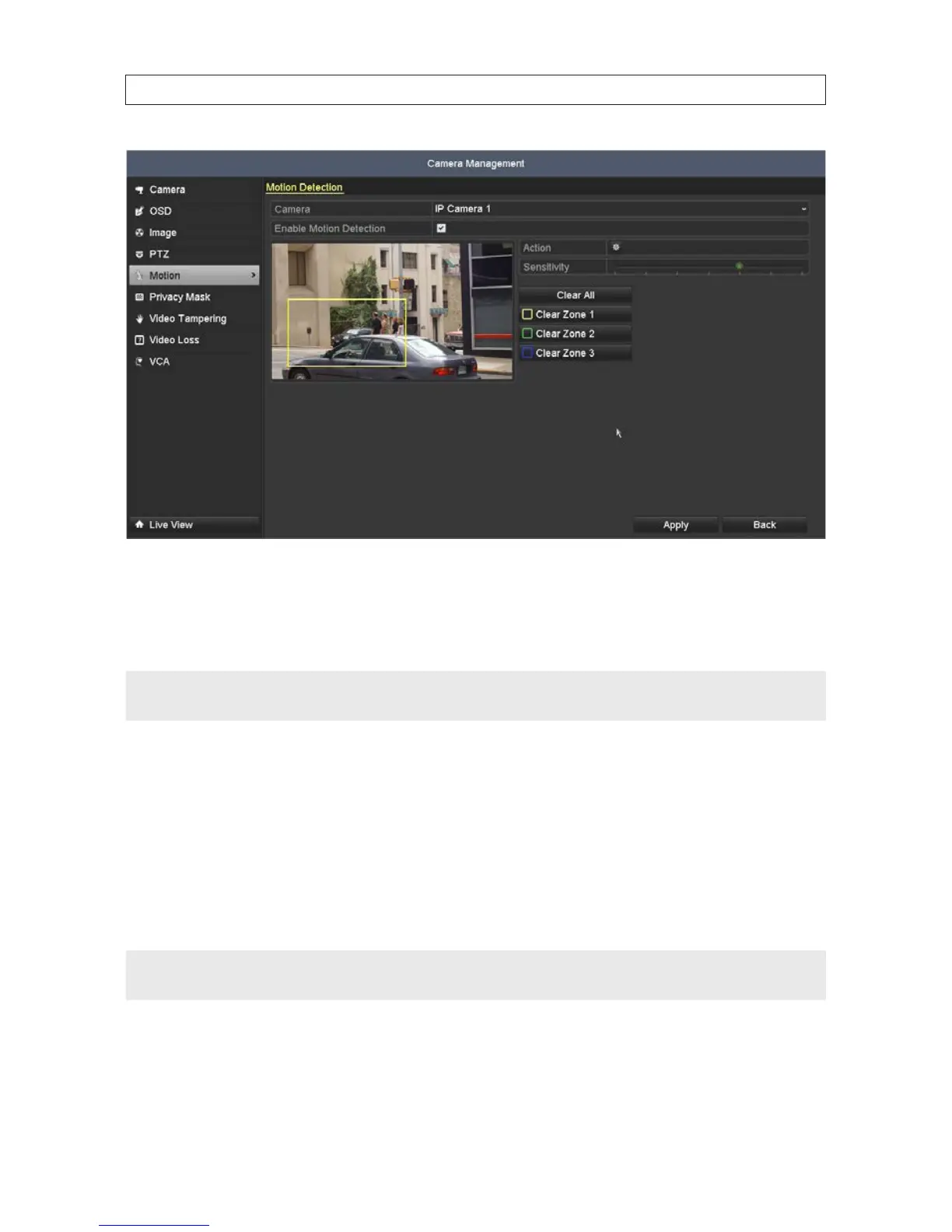 Dening a specic area where you want to detect for motion is more ecient for the NVR than searching for motion anywhere in