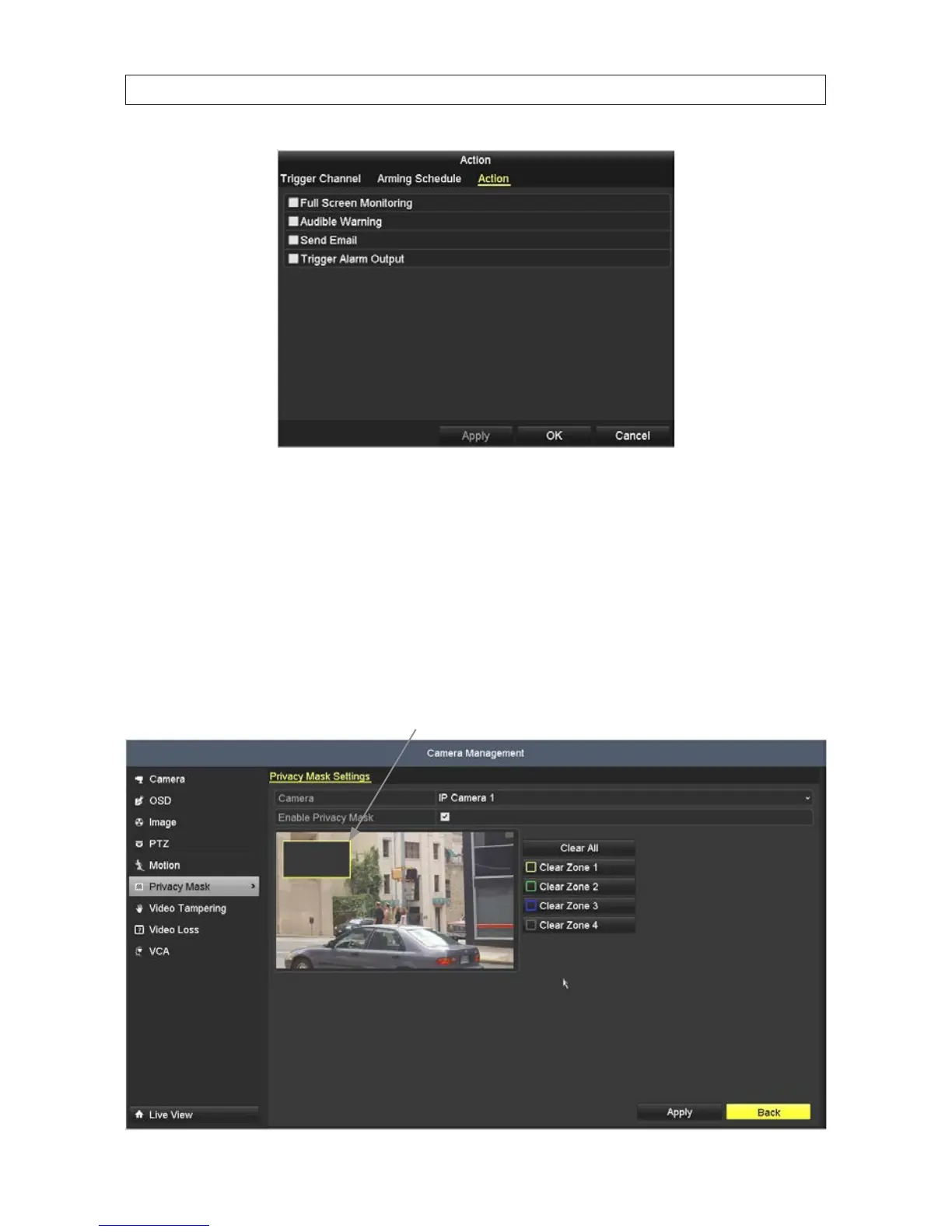 1. Click Privacy Mask in the left frame to open the Privacy Mask submenu.
