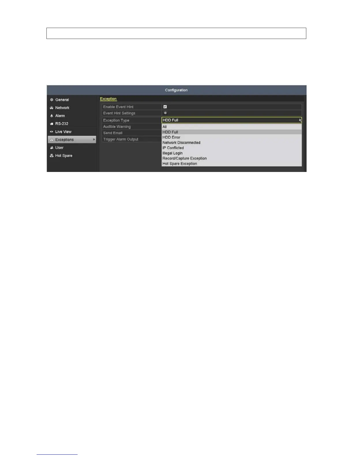 2. On the Exception Type line, open the drop down list and select the exception condition you want to congure. If you select