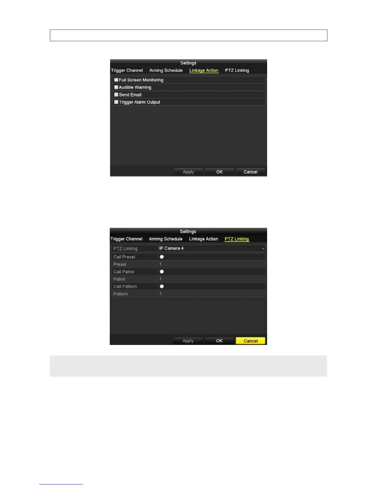 • Verify that your PTZ or speed dome camera supports PTZ linkage before making these settings.