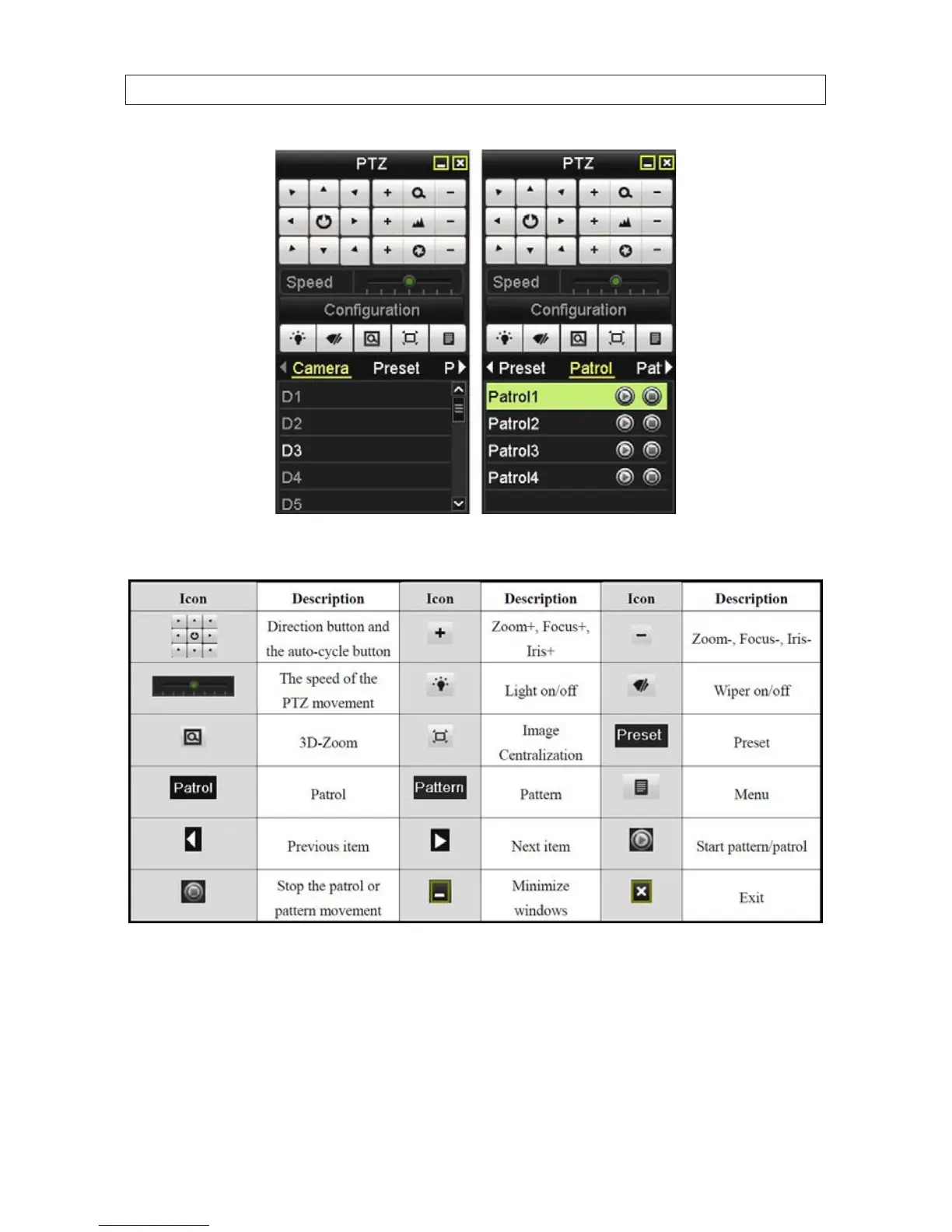 PTZ control panel icons