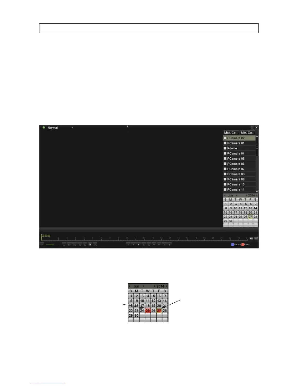 • In the “Recorded video clips” markings, blue marks represent Normal recording, red marks indicate event recording (motion,