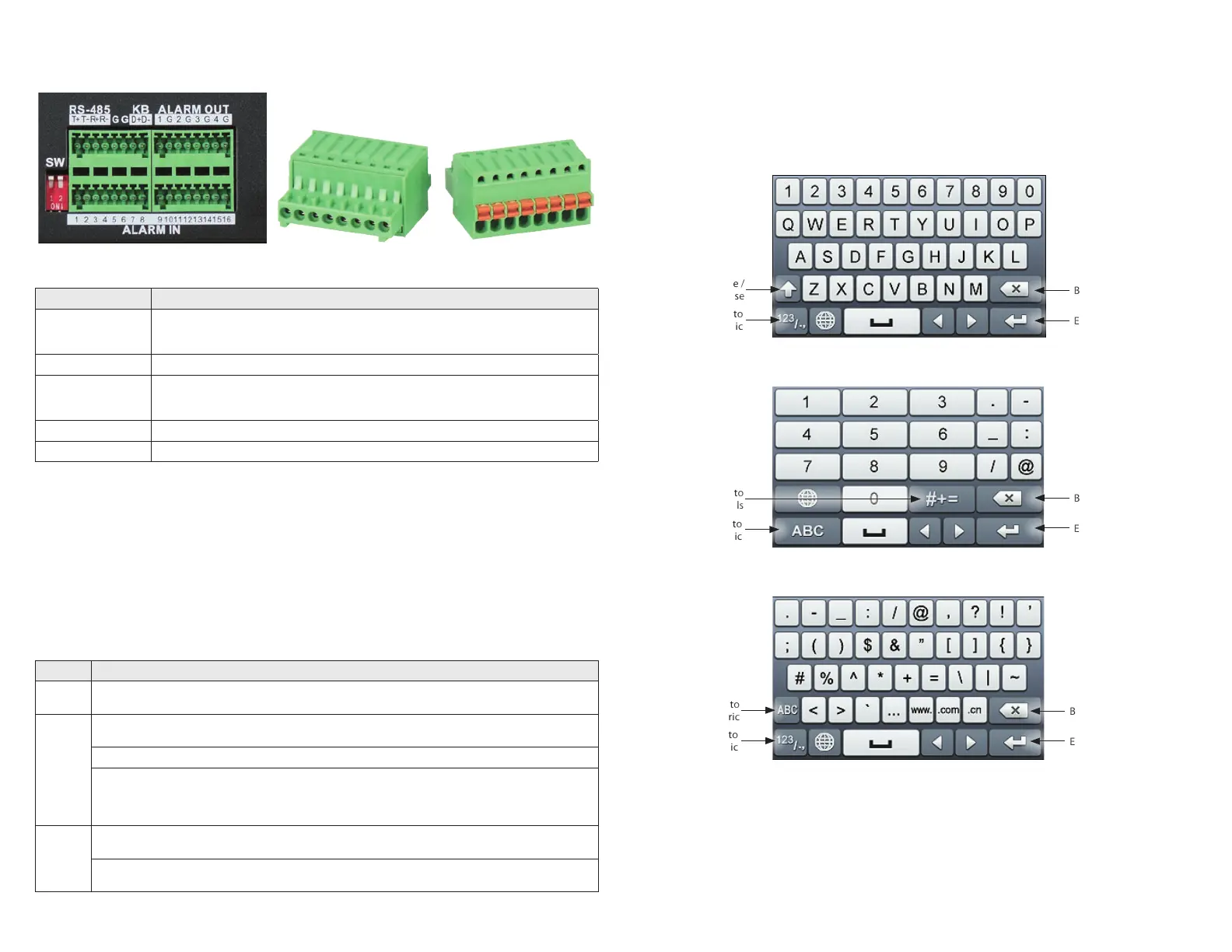 A third keyboard which includes symbols can also be opened while in the numeric keyboard. The alphanumeric keyboard is shown in