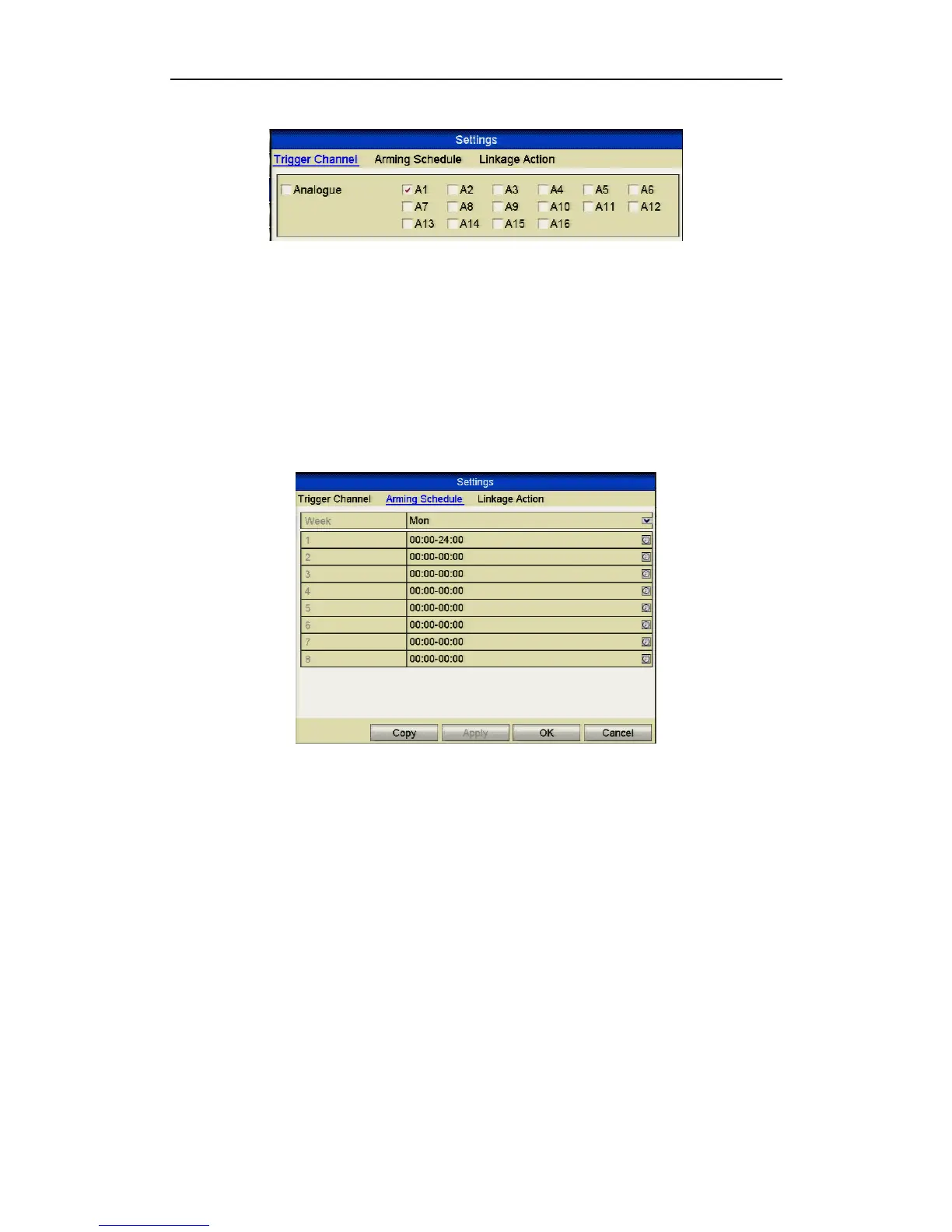 Select Arming Schedule tab to set the channel’s arming schedule.