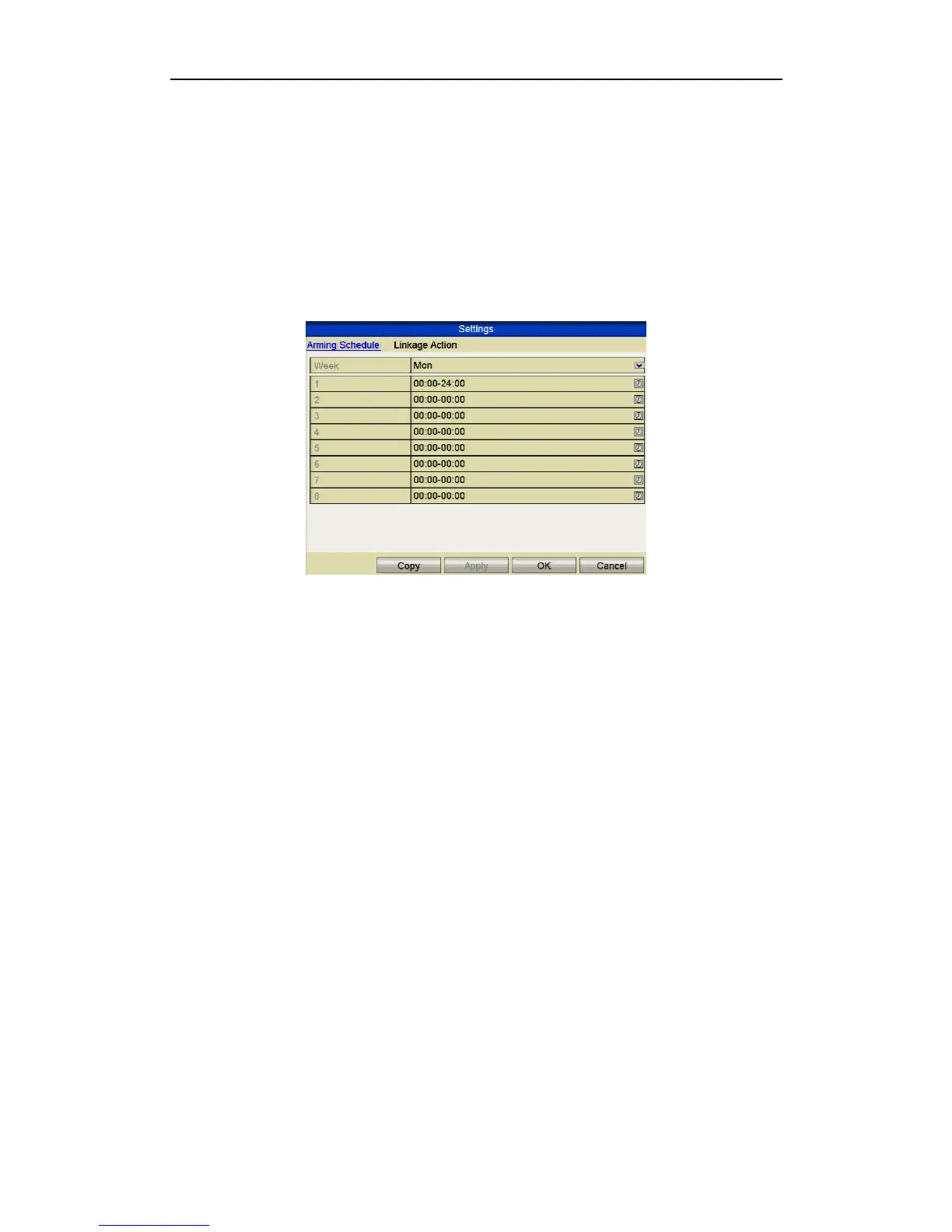 1) Click Arming Schedule tab to set the arming schedule response action.