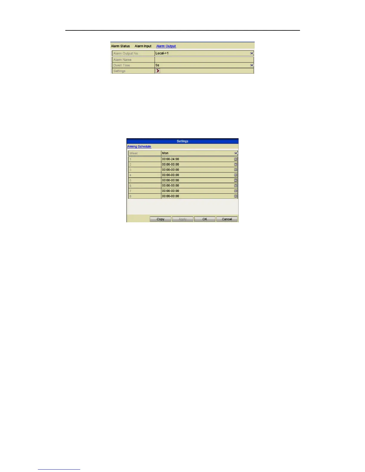 2. Set up arming schedule for the alarm output.