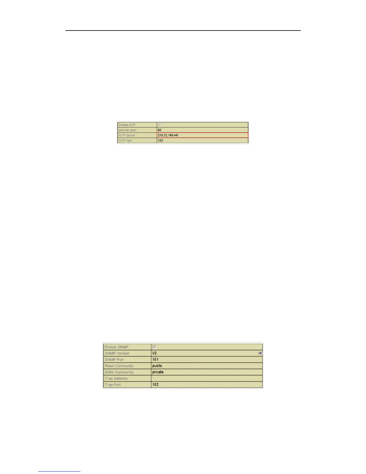 • NTP Server: IP address of NTP server.