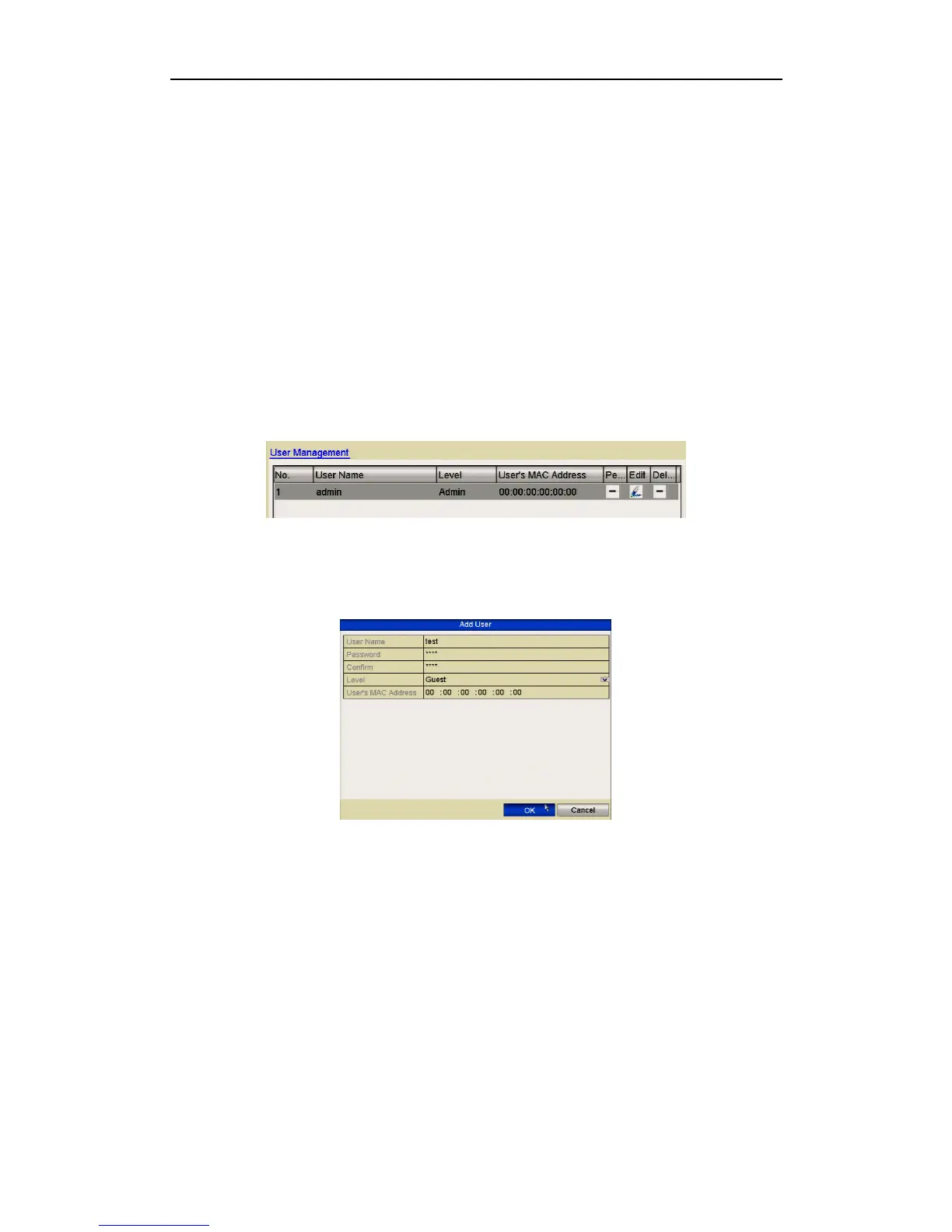 3. Enter the information for new user, including User Name, Password, Level and
