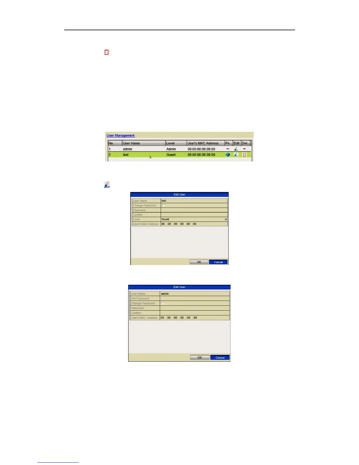 3. Click the icon to delete the selected user.