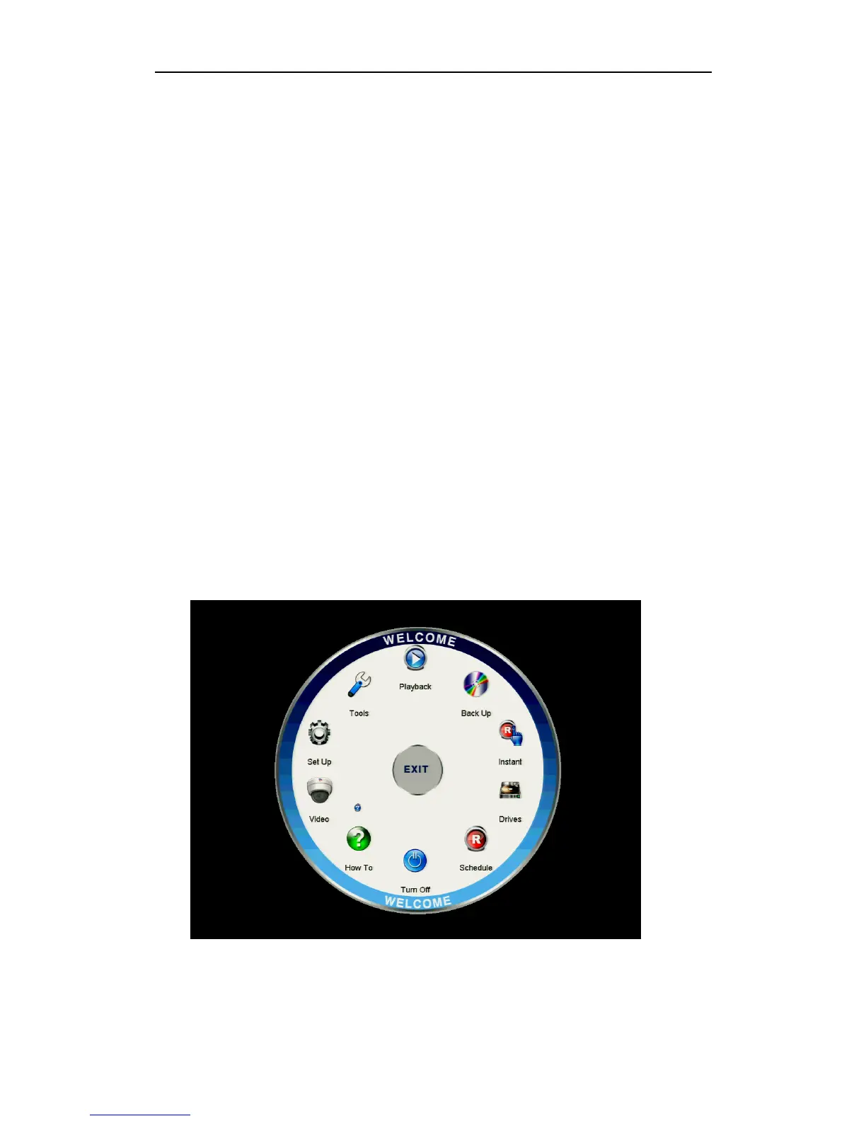 of the DVR if applicable, to enter the Menu Welcome screen.