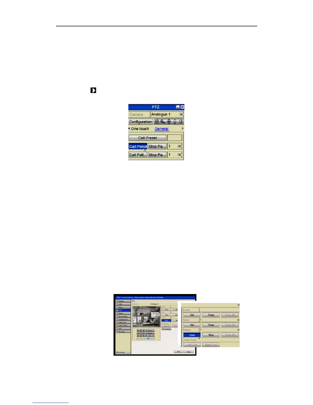 Calling a patrol makes the PTZ initiate the predefined patrol number.