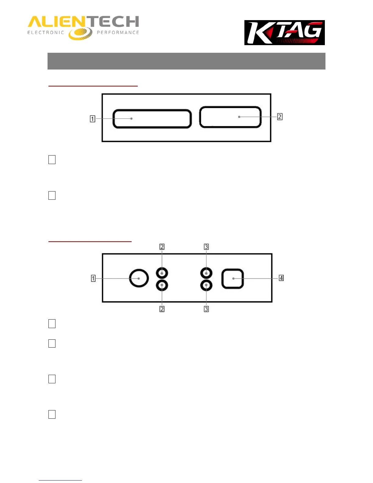 The blue LED (ECU/ON, top) lights up when the tool is communicating with the ECU. The orange LED (KEY/ON,