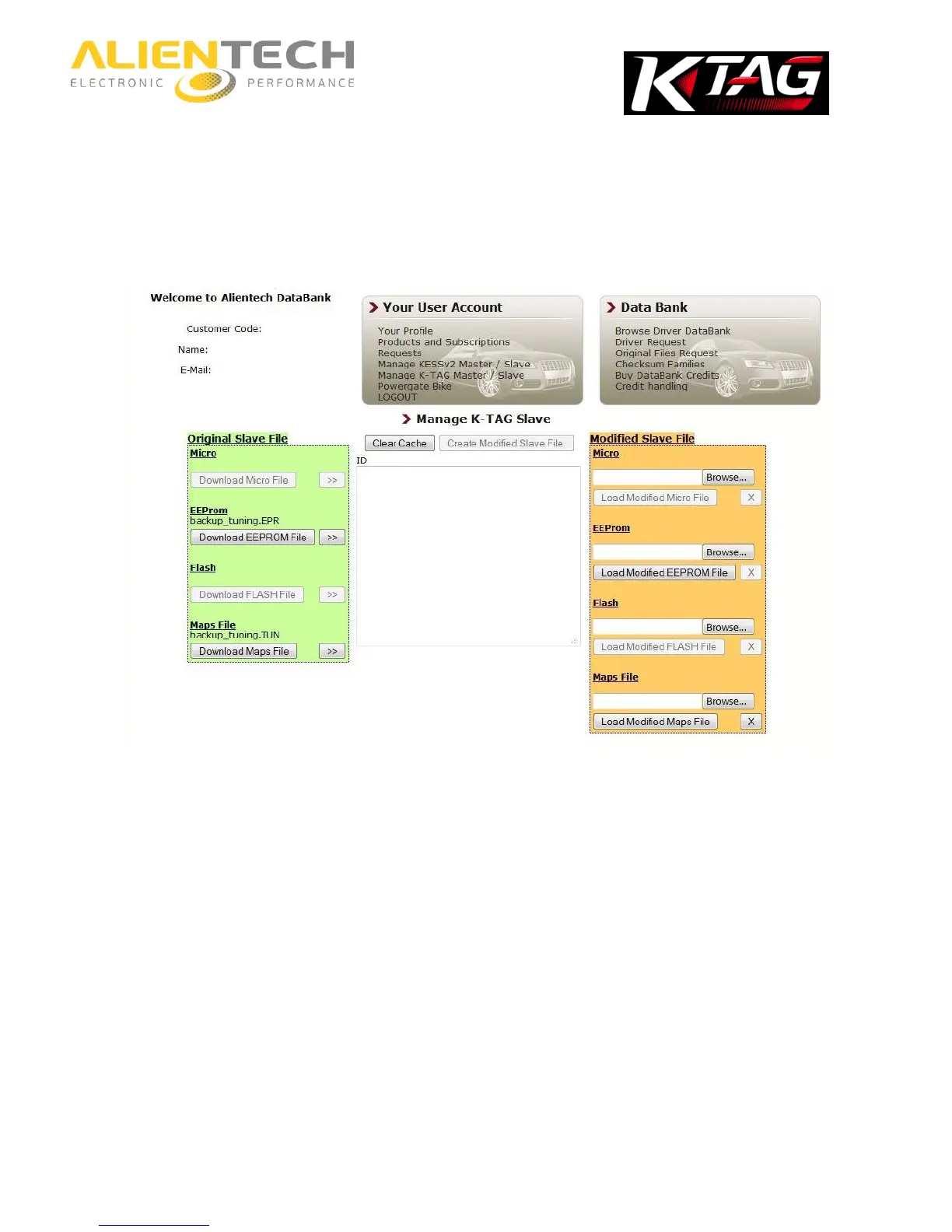 In the ID box (in the middle, on white background), ECU data are displayed.