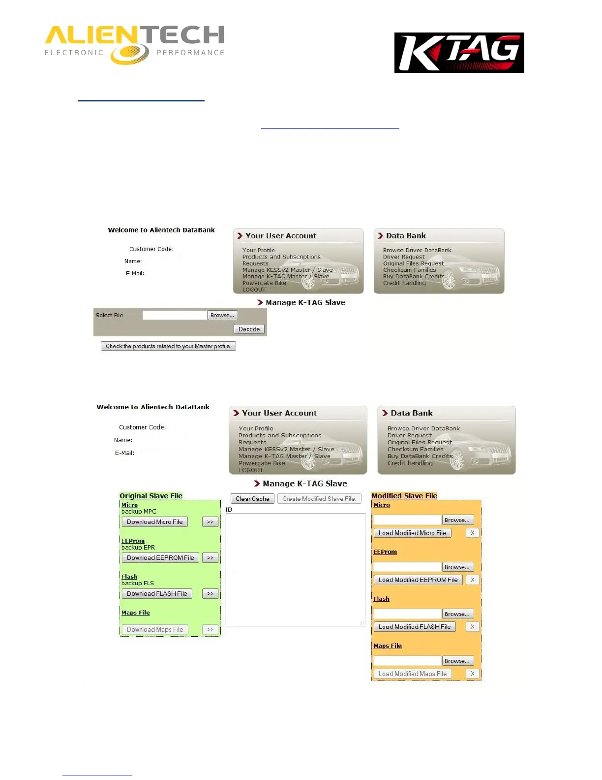 1. Login to the Alientech Data Bank https://databank.alientech.to/ with your Customer Code