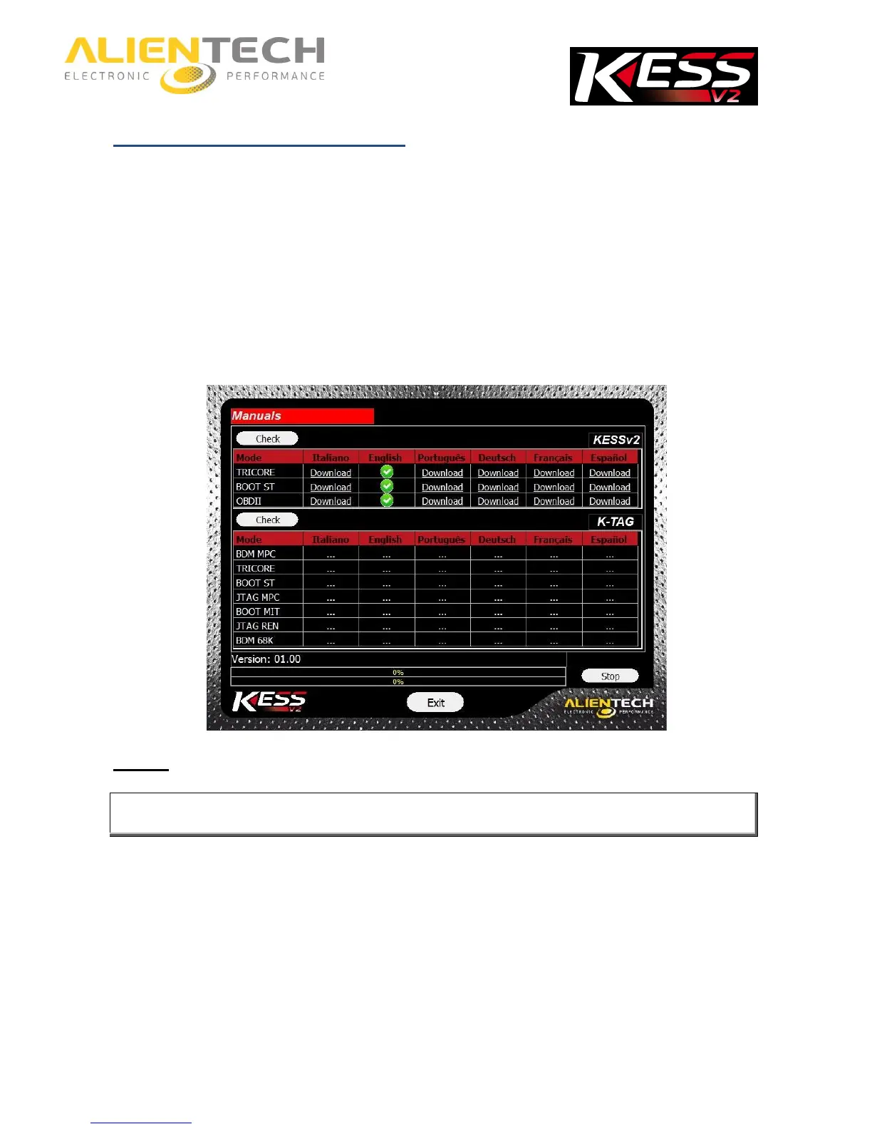 The Operating Manuals can be download free of charge by all the owners of KESSv2, even if