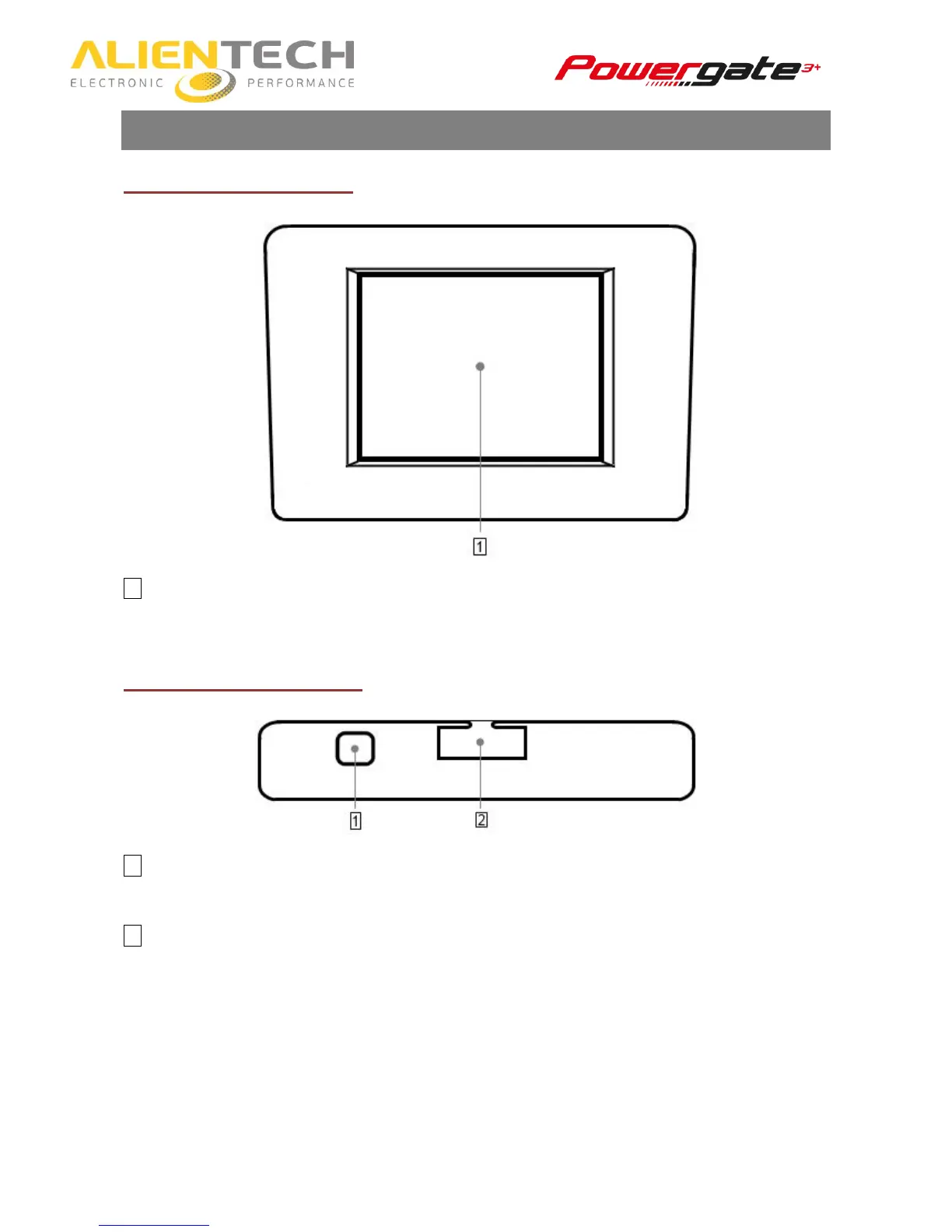 AlienTech Powergate3+ - Part names and functions; Front side of the tool; Upper side of the tool