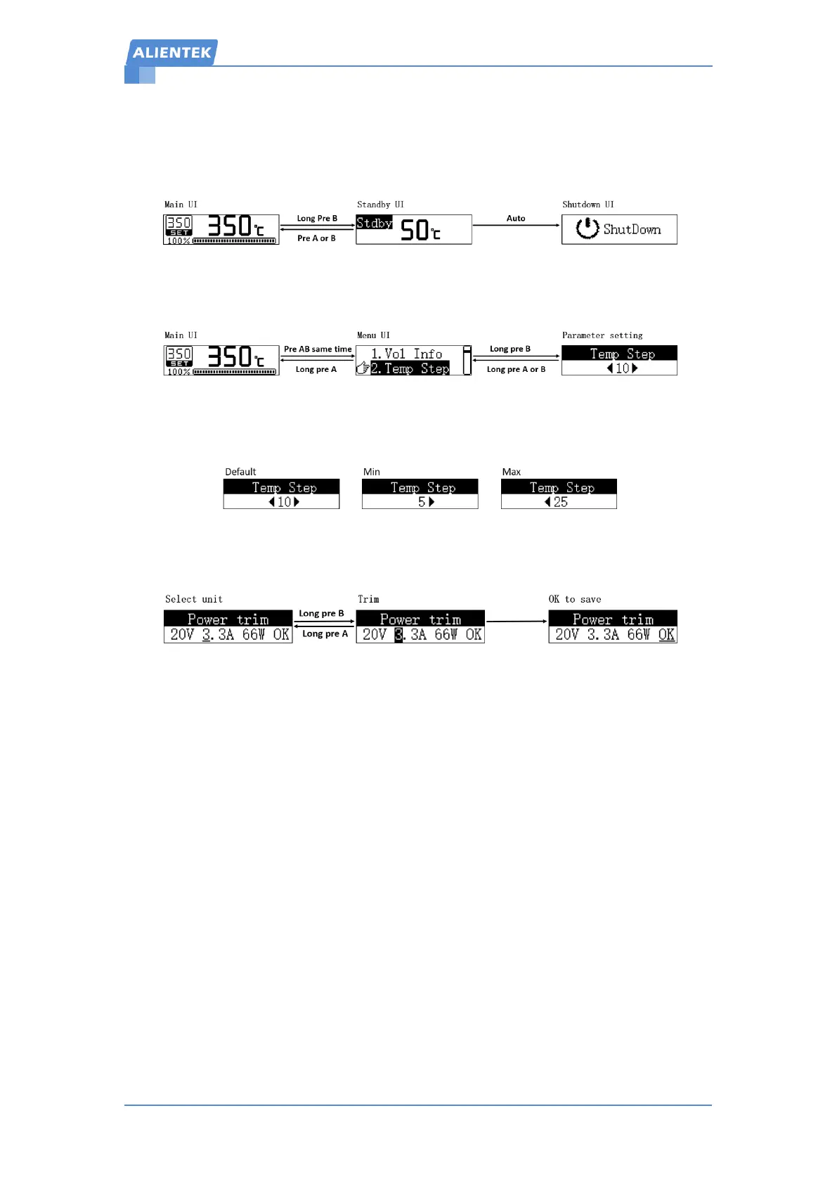 Temperature adjustment: click A or B to enter the temperature adjustment UI. And release