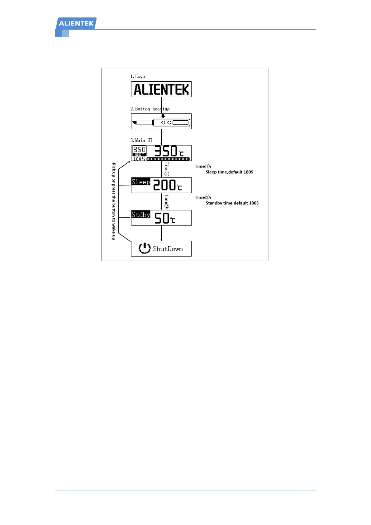 Standby state: The soldering iron is not heated. In the same way, it will exit the dormant