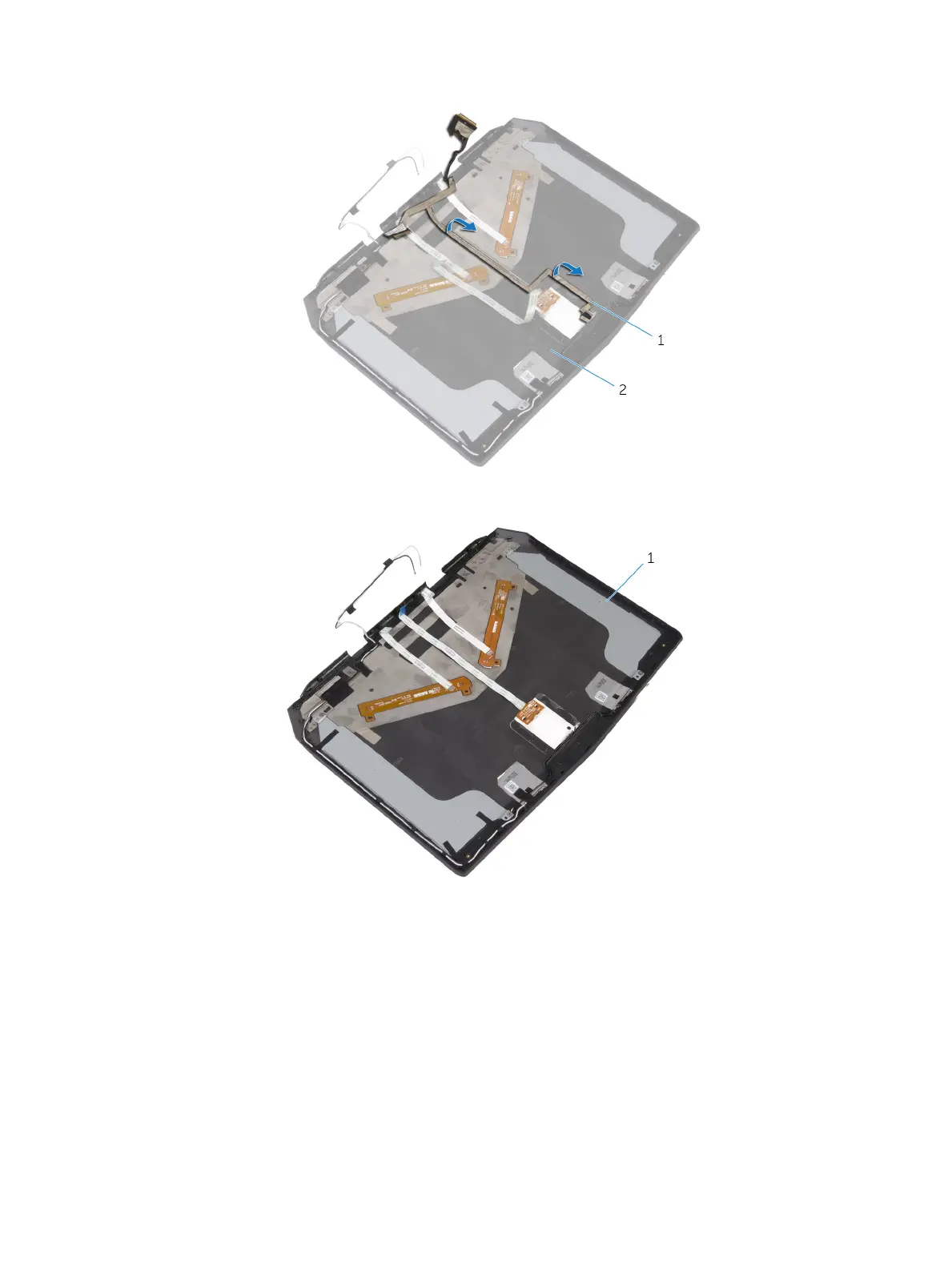 2 Note the display cable routing and peel the camera cable o the display back-cover.