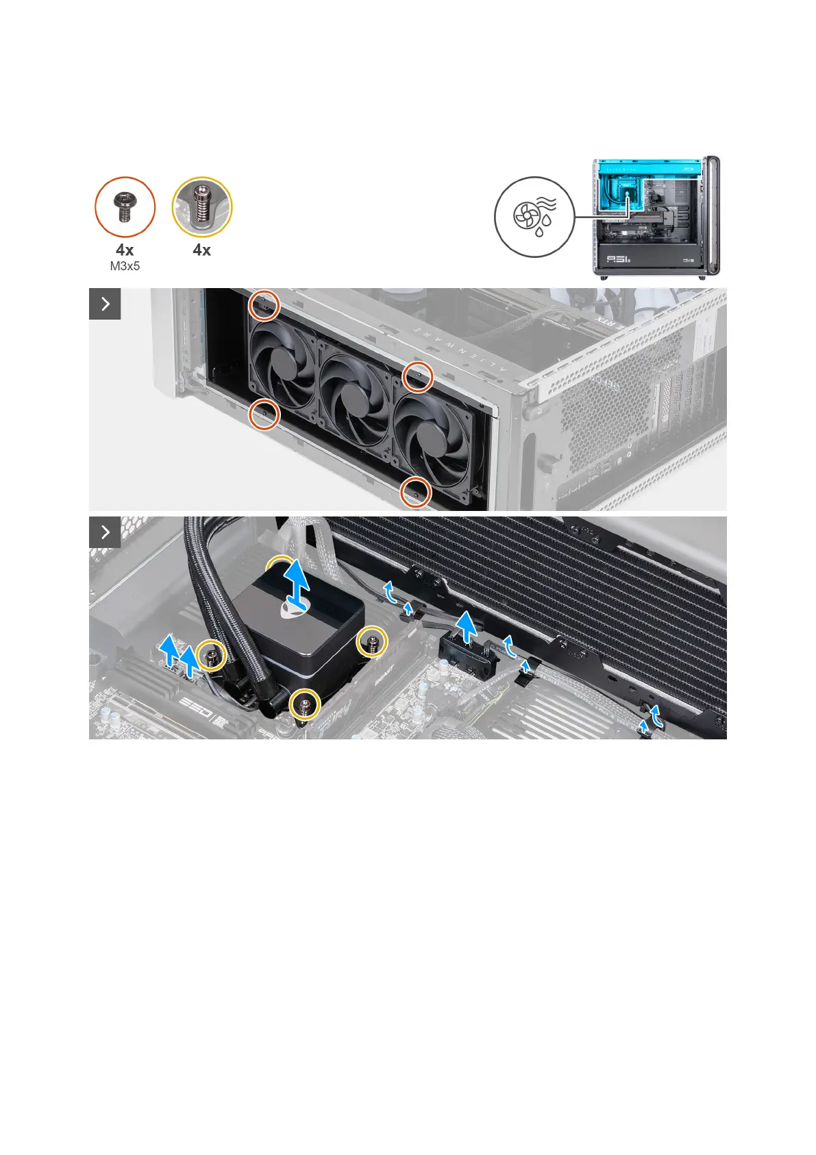The following images indicate the location of the processor liquid-cooling assembly and provide a visual representation of the
