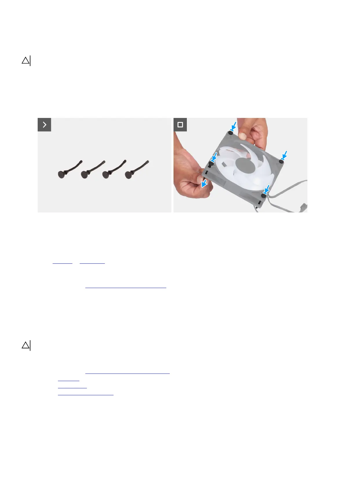 3. Install the front fan or bottom fan after replacing the fan grommets.
