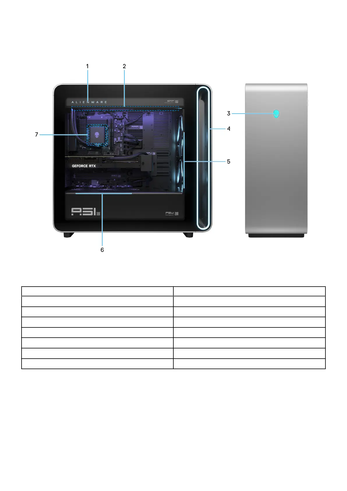 Table 22. Alienware Area-51 AAT2250 lighting zones