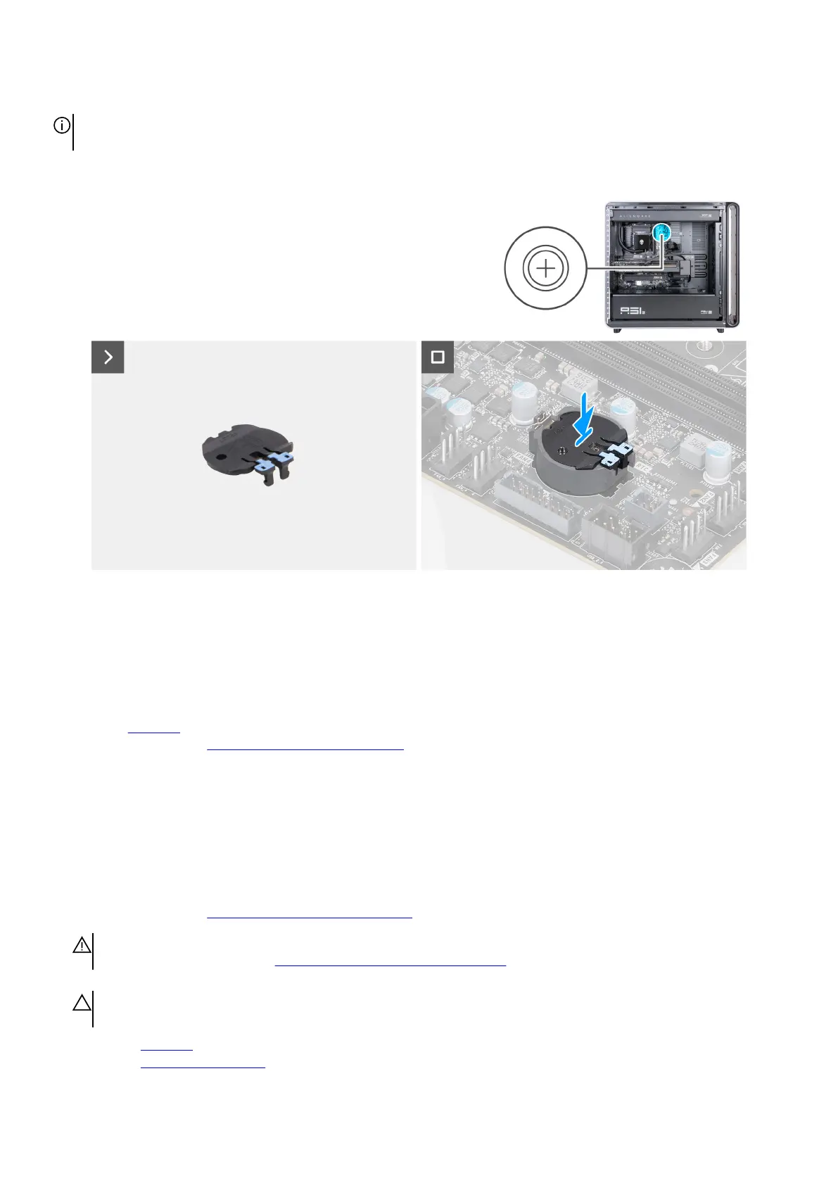 2. Align and place the coin-cell battery cover into the coin-cell battery slot on the system board.