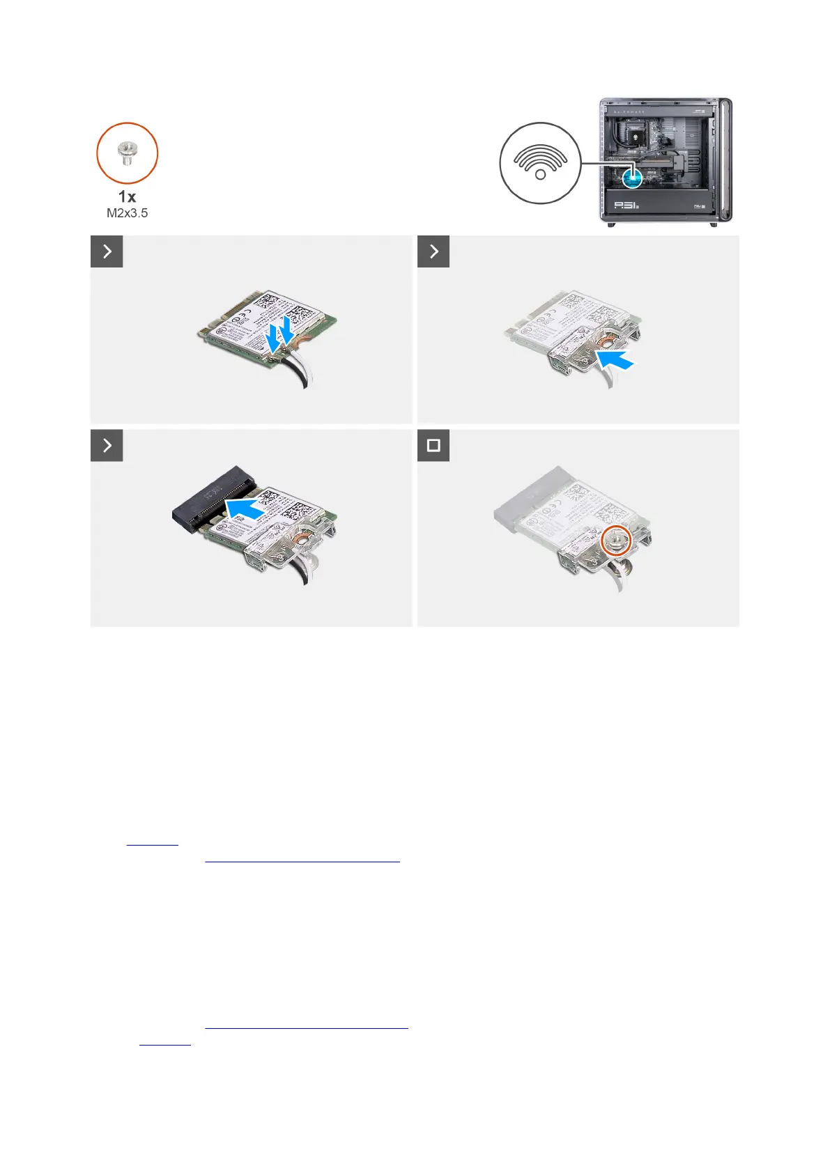 5. Replace the screw (M2x3.5) that secures the wireless card and wireless-card bracket to the system board.