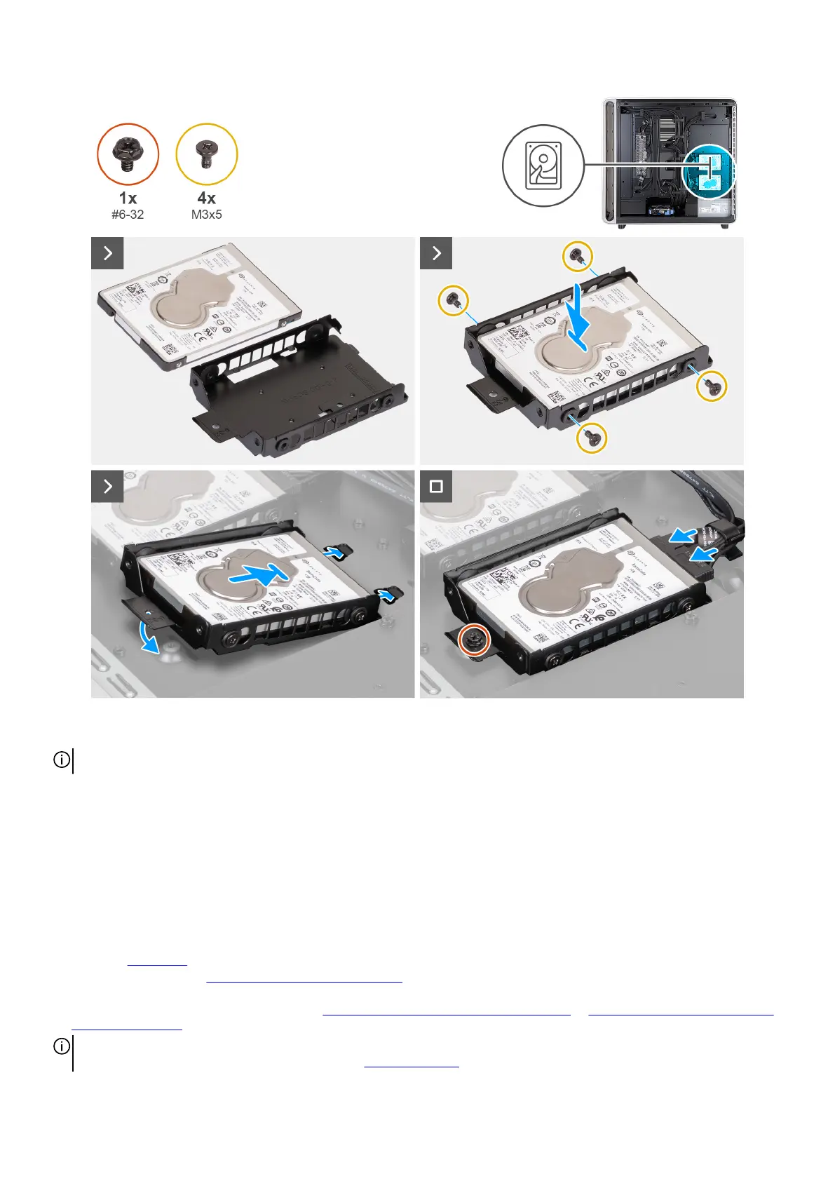 2. Replace the four screws (M3x5) that secure the hard drive to the hard drive cage.
