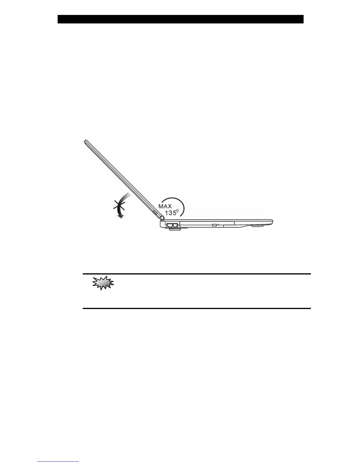maximum opening of 135 degrees. Do not push it down forcibly.